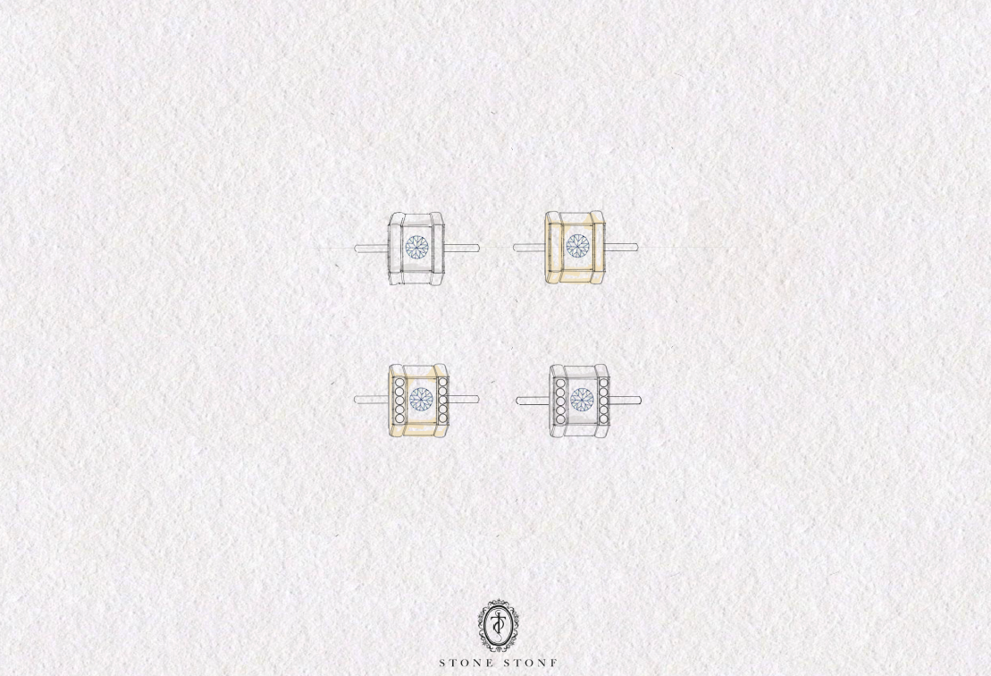 The sketches above reveal our designers’ process — from concept to technical rendering — showcasing how modern geometry and lab-grown brilliance harmonize.